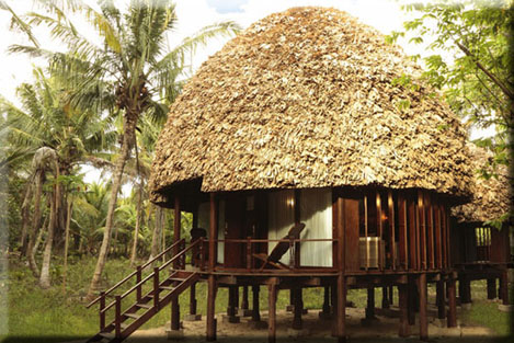 Accommodation : 18 beautifully designed cottages that are hidden among 7 acres of grounds, their hardwood walls and conical thatch roofs blending into the tropical foliage. You get basic comforts (modern plumbing, air-con or ceiling fans). The barefoot philosophy means a minimal footprint, so only indigenous materials are used, rainwater is harvested, most staff are local.